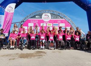 Maglia rosa STELLANTIS AUTONOMY della quindicesima edizione del Giro handbike sulle spalle di Gabriele Scalise (MH1), Sebastiano Nardin (MH2), Cristoph Stadbauer (MH3), Christian Giagnoni (MH4), Guido Paier (MH5), Andrea Villa (MHO), Natalia Beliaeva (WH1), Teresa Angela De Gregorio (WH2), Francesca Fenocchio (WH3), Kristina Madajova (WH4), Katia Aere (WH5) e Lorenza Casetta (WHO).