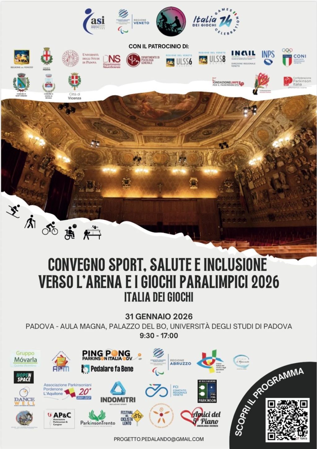 L'iniziativa è in programma sabato 31 gennaio 2026 presso l’Aula Magna del Palazzo del Bo dell’Università degli Studi di Padova, ed intende promuovere una riflessione condivisa sul ruolo dello sport come strumento di salute, inclusione e partecipazione sociale, anche in vista dei Giochi Paralimpici Milano Cortina 2026 e della pedalata inclusiva “Pedalando verso l’Arena”, prevista per il prossimo 6 marzo.