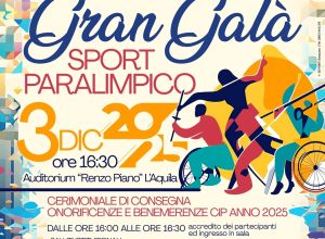 Sarà una vera e propria parata di campioni e personalità quella in programma mercoledì 3 dicembre a L’Aquila, dove si terrà il Gran Galà dello Sport Paralimpico 2025 presso l’Auditorium Renzo Piano.