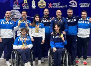 L’Italia ha chiuso con una doppia, ben 10 medaglie, la tappa di Coppa del Mondo Paralimpica di Nakhon Ratchasima, che ha inaugurato la stagione internazionale 2025-2026 della scherma in carrozzina. Nella quarta e ultima giornata della kermesse thailandese, dedicata alle gare a squadre con formula Open (Mixed Team con due uomini e due donne in formazione), gli azzurri hanno conquistato l’oro nel fioretto e l’argento nella spada.