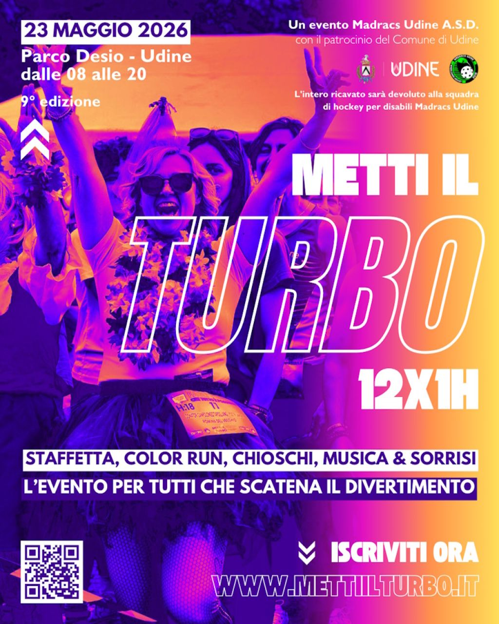 Udine, 20 aprile 2025 - Torna al Parco Ardito Desio di Udine uno degli appuntamenti più attesi della primavera friulana. Il 23 maggio 2026, l'ASD Madracs Udine darà il via a una delle giornate più coinvolgenti dell'anno con la 9ª edizione di Metti il Turbo 12x1h: dodici ore consecutive di staffetta non competitiva, musica, colori e divertimento, con un obiettivo di solidarietà — sostenere concretamente il futuro della prima squadra friulana di hockey in carrozzina elettrica.